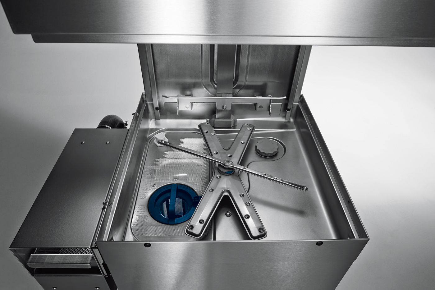Het handmatig voorwassen met een handsproeier is niet meer noodzakelijk. Dit bespaart enorm veel tijd en water. Dit revolutionaire systeem zorgt ook dat al het grove vuil direct uit de machine verwijderd wordt. Het grove vuil wordt opgevangen in een vergaarbak. Deze kan heel eenvoudig geleegd worden. Permanent Clean waarborgt een continu hygiënisch spoelresultaat zonder overbodige waterverversing. Minder water is minder chemicalien